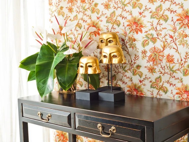Dán tường với họa tiết hoa văn có màu sắc đậm sẽ khiến tất cả công sức trang trí của bạn trong ngôi nhà sẽ bị lu mờ. Tuy nhiên, nếu yêu phong cách cổ điển, hãy khéo léo chọn giấy dán tường hình hoa với họa tiết nhỏ nhắn, tinh tế, màu sắc nhẹ nhàng.